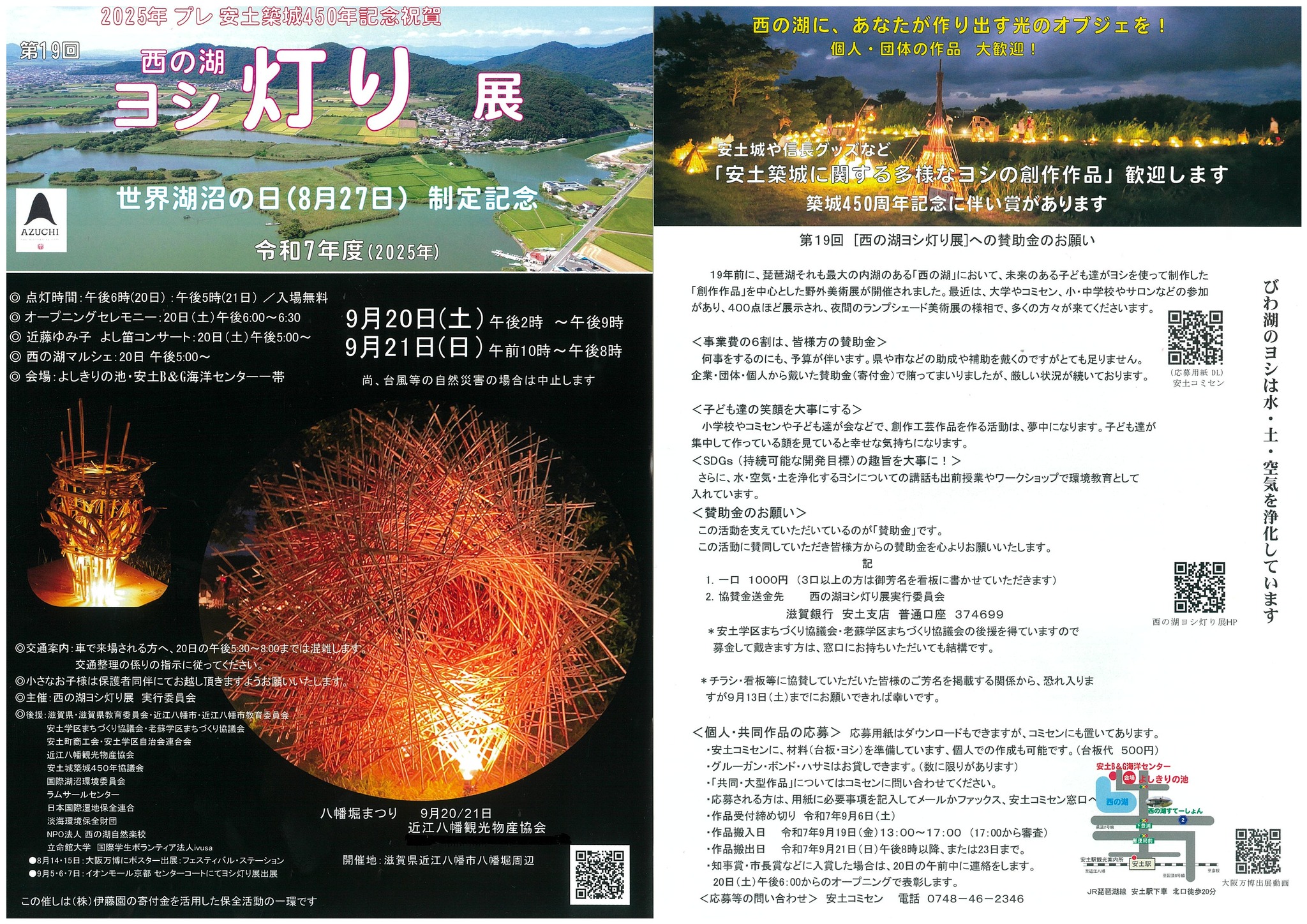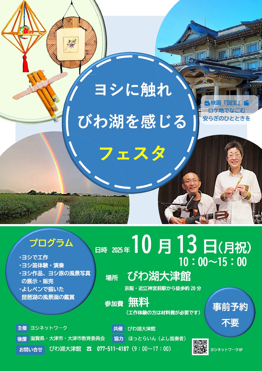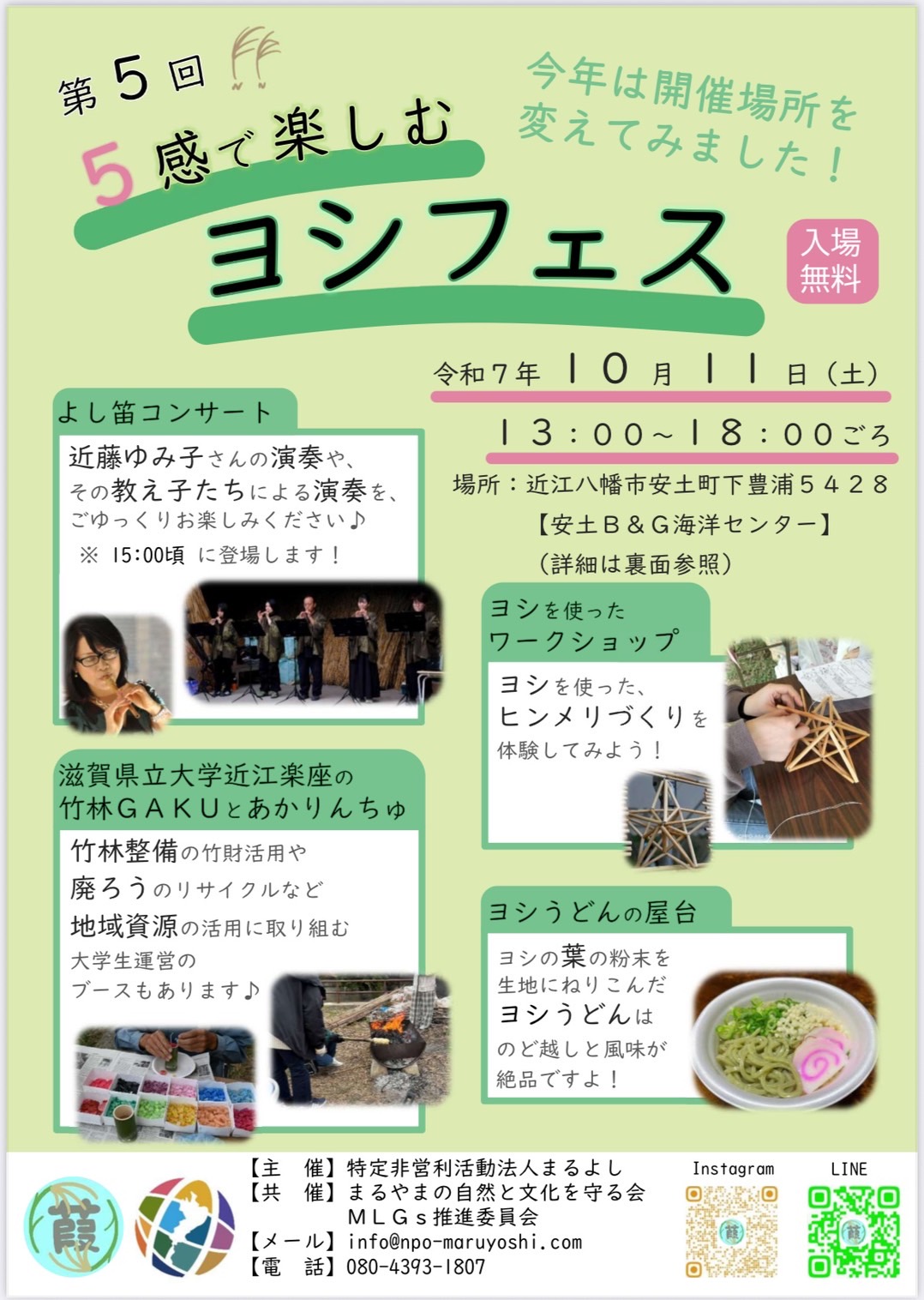 10月11日(土) 13:00-18:00 | 会場:安土B&G海洋センター 近江八幡市安土町下豊浦5428 〔 地図 〕 15時ごろから近藤ゆみ子会長らによる よし笛コンサートが開催されます |