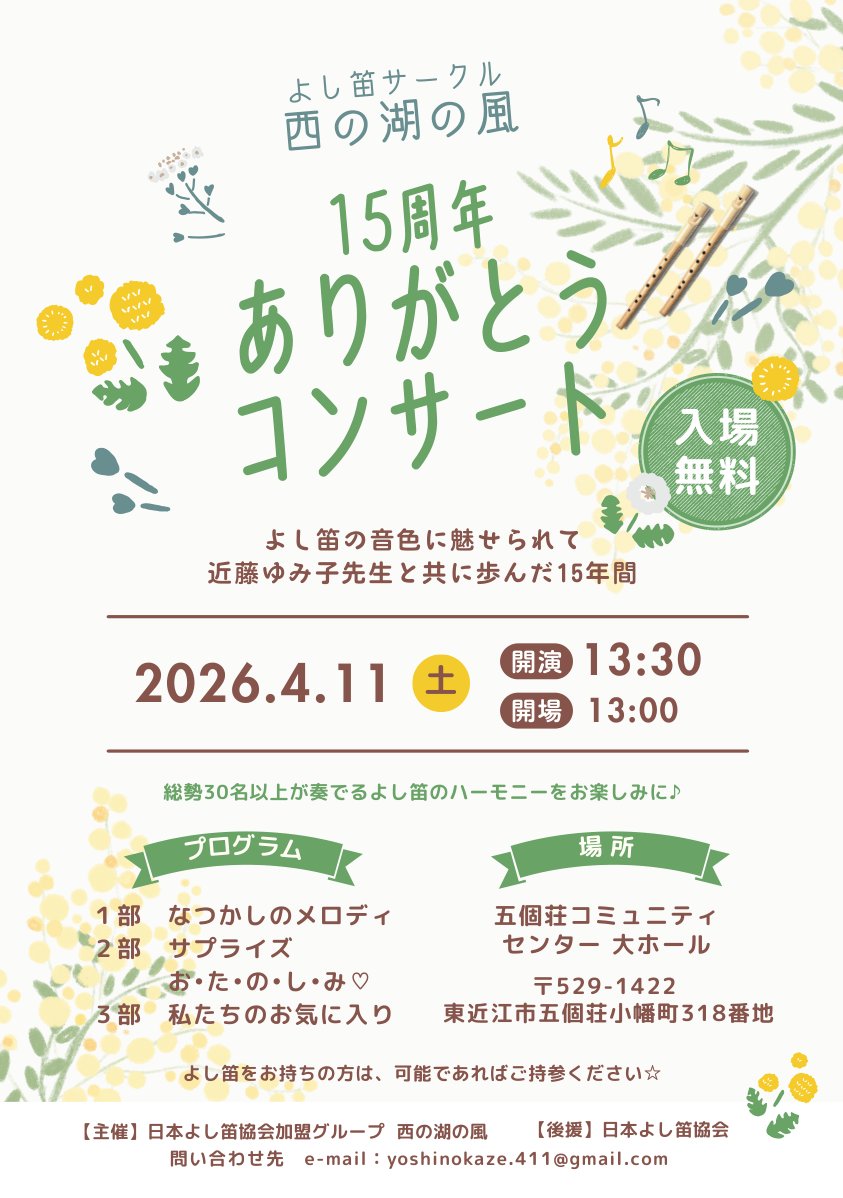 4ŒŽ11“ú(“y) 13:30` | ‚P‚TŽü”N‚ ‚肪‚Æ‚¤ƒRƒ“ƒT[ƒg i“üê–³—¿j ‰ïêFŒÜŒÂ‘‘ƒRƒ~ƒ…ƒjƒeƒBƒZƒ“ƒ^[E‘åƒz[ƒ‹ k ’n} l mƒ`ƒ‰ƒV‚̃f[ƒ^iPDFjn |
